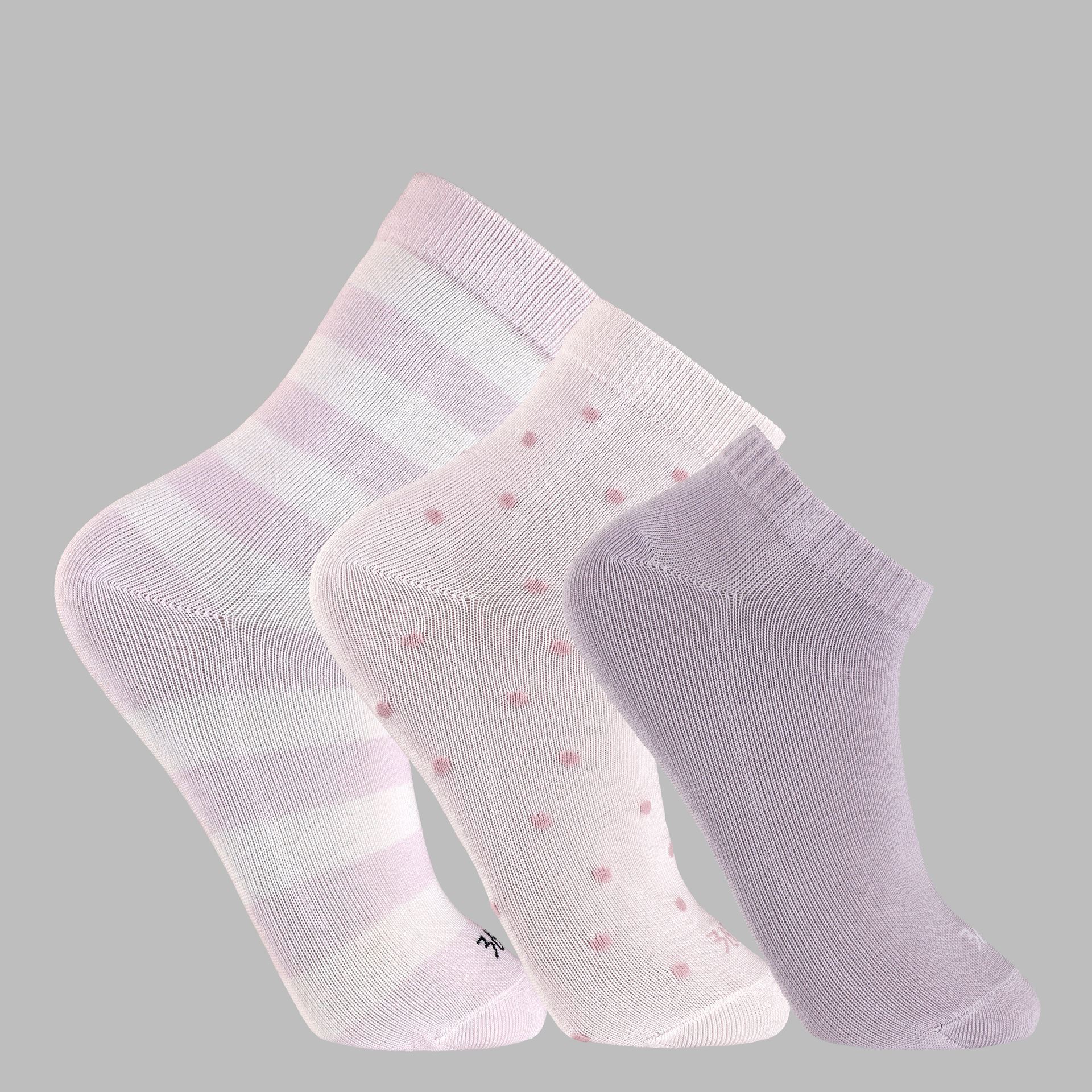 پک جوراب زنانه 361 درجه مدل W512343028-2 شامل سه جفت جوراب با طراحی متنوع و کاربردی است که برای استفاده روزمره و استایلهای مختلف انتخابی ایدهآل محسوب میشود. این پک ترکیبی از جوراب مچی، نیم ساق و ساق بلند با رنگبندی بنفش است.