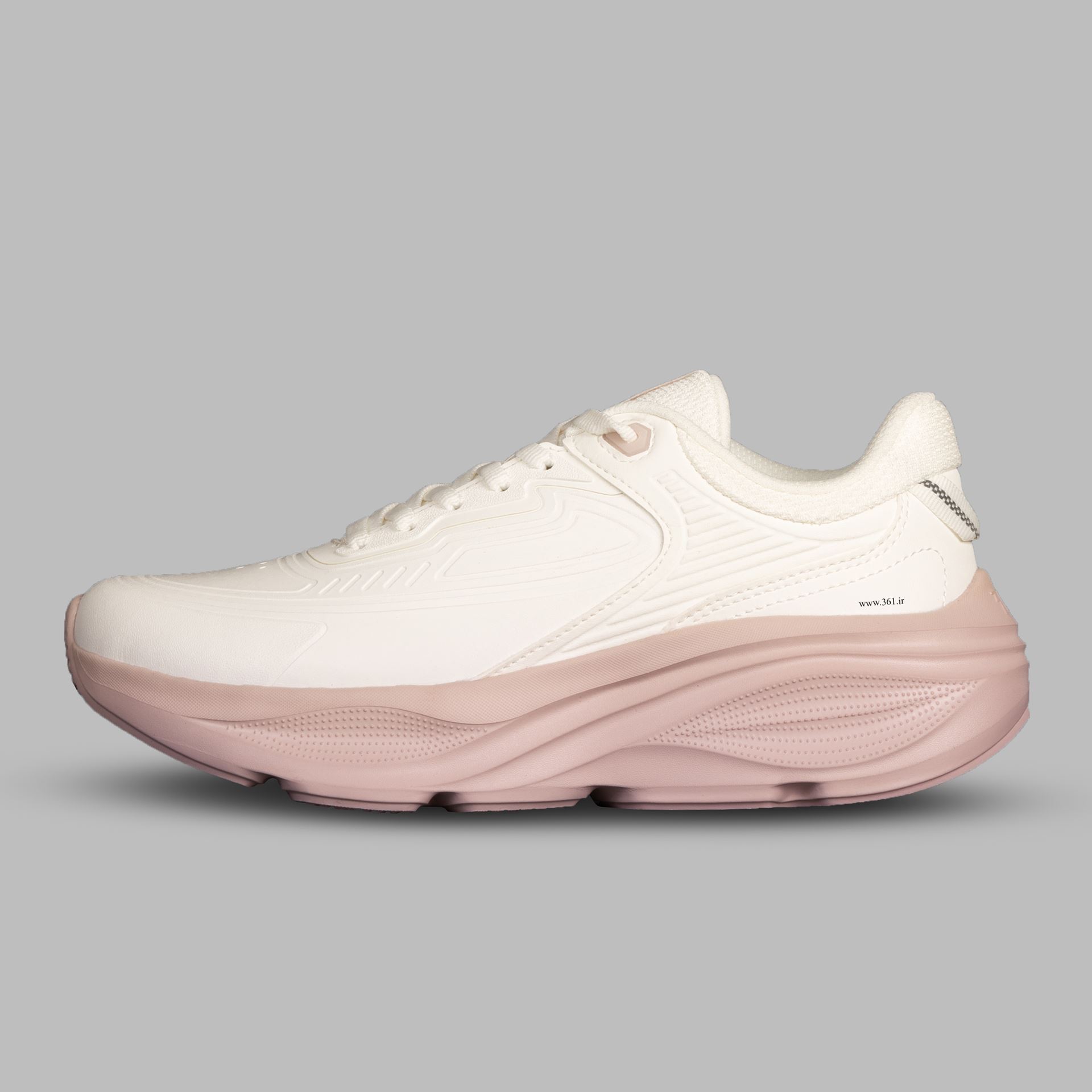 کفش زنانه دویدن 361 درجه از سری W’s Performance Running با طراحی استاندارد و رنگ شیری و صورتی، مناسب دویدن، پیادهروی و استفاده طولانیمدت است. این مدل با ساختار استاندارد سری Performance Running، پا را در وضعیت طبیعی و بدون فشار نگه میدارد.