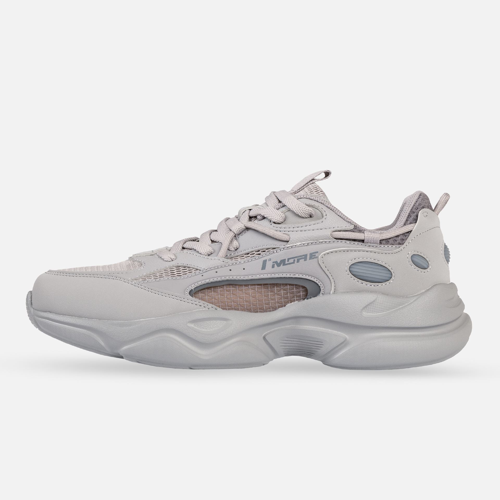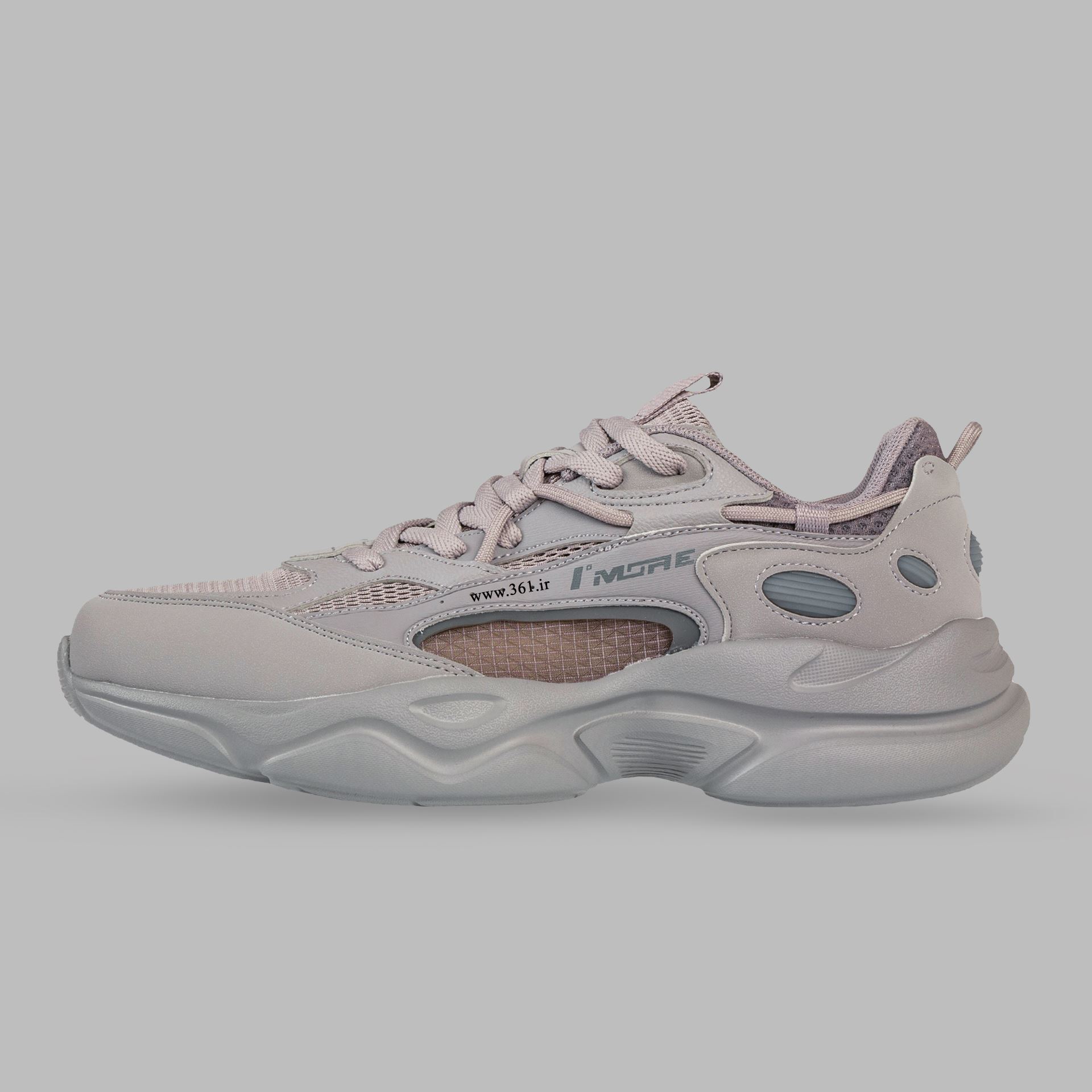 این کفش با رنگ طوسی کلاسیک و طراحی مینیمال،